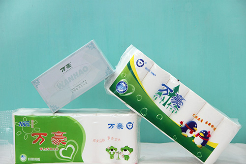生活用纸主要产品:1.2kg绿万豪卫生纸、1.4kg好运卫生纸、2kg万豪卫生纸、1.5kg丽洁卫生纸、盒抽、软抽、盒抽礼品箱、擦手纸。
